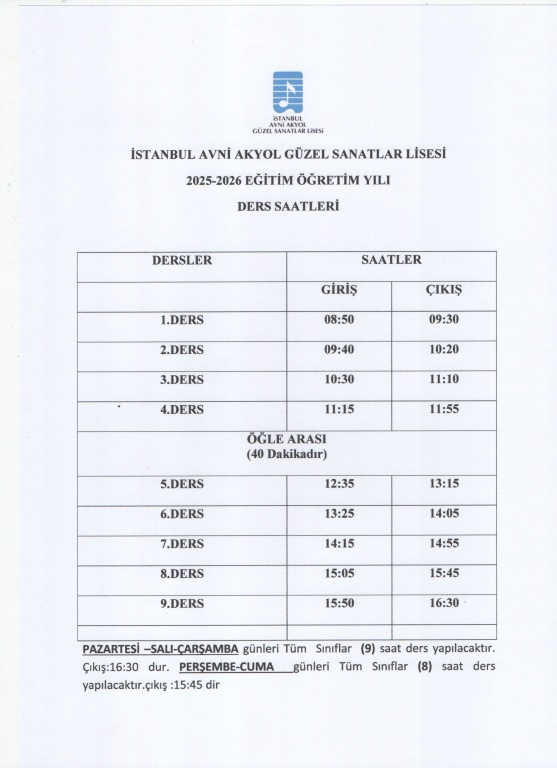 2025 2026 ders giriş çıkış saatleri